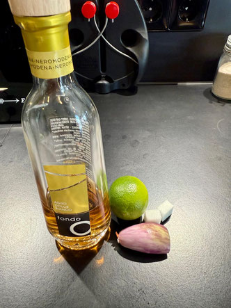 Blattgelatine, Dill,Biozitrone, Sauerrahm, Schlagsahne, Honig, Dijonsenf, Nordseekrabben, Salz, Pfeffer, Tomaten, Schalotte, Knoblauch, Schwarze Oliven, Basilikum, Olivenöl